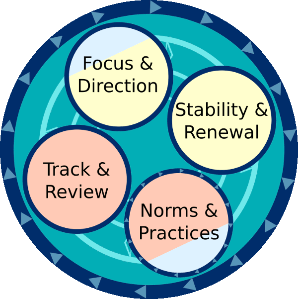 All of these make up an ongoing cycle in organisational life. Norms and Practices make up the day to day cycle that builds wellbeing and productivity.